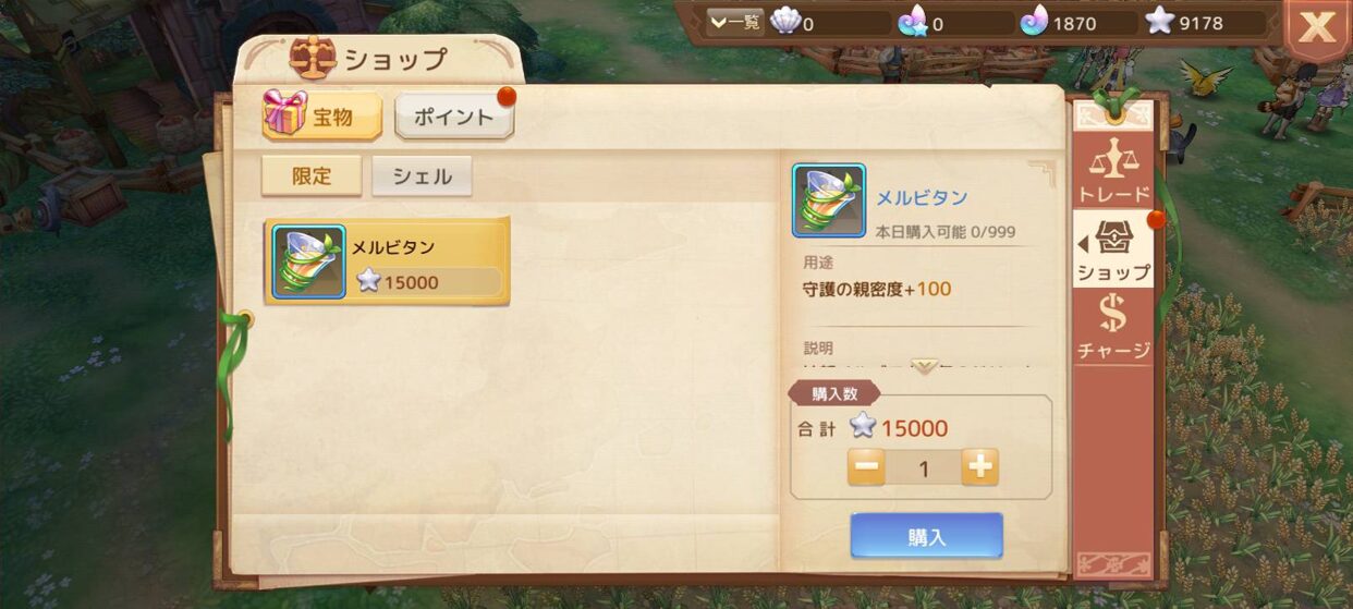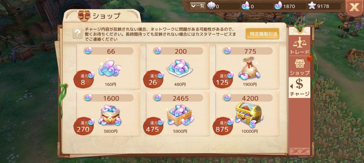 『アッシュテイル』では、ゲーム内通貨「シェル」を購入してアイテムや強化に使います。