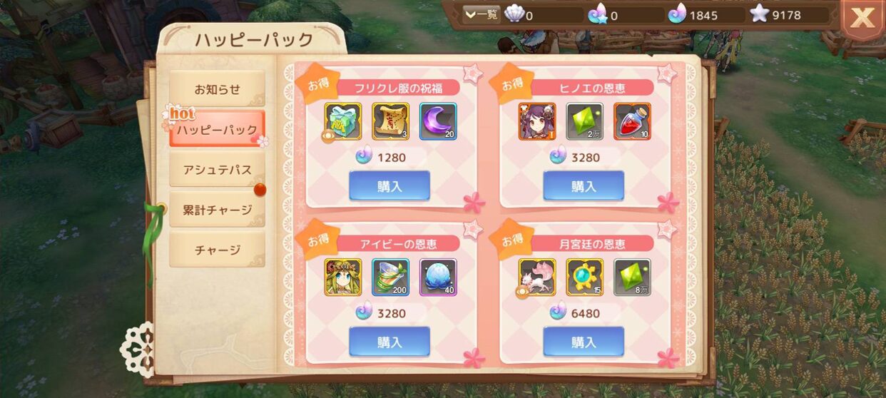 中でも『ハッピーパック』は様々なアイテムをまとめてもらえるので、おすすめです。